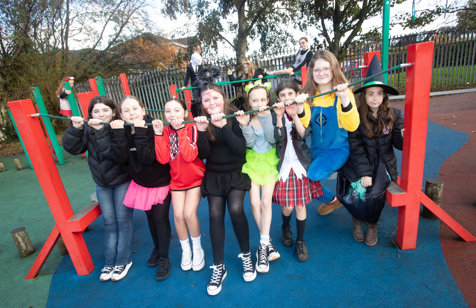 More P7 girls posing for a picture during Halloween Celebrations at Greenhaw PS on Friday.