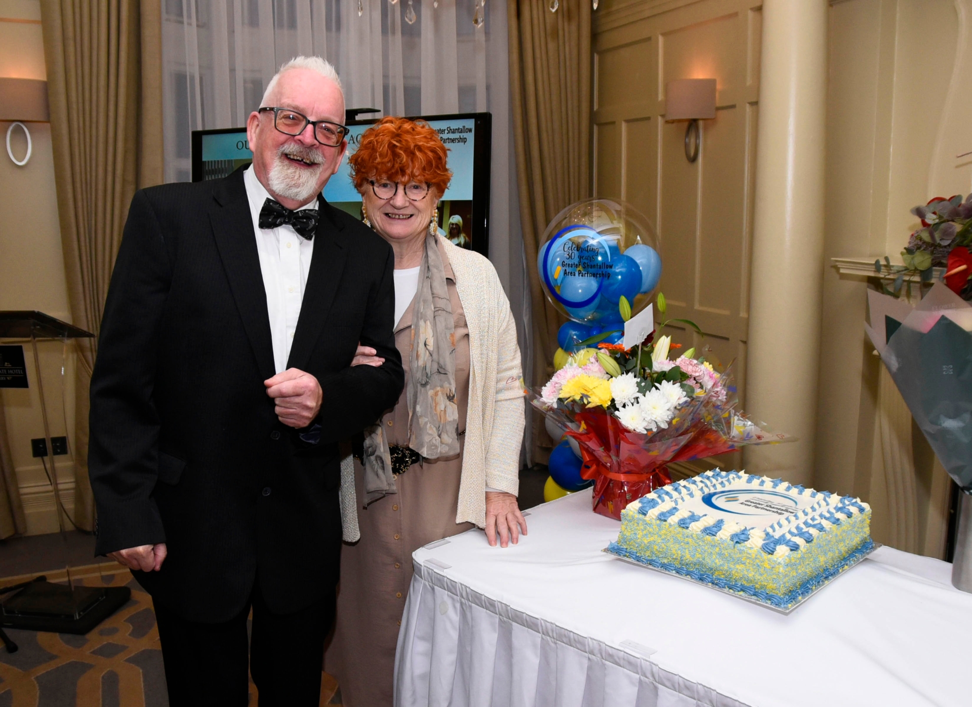 Greater Shantallow Area Partnership's founding member Charlie McDaid is pictured with his wife Anne at the group's 30th anniversary celebrations in Bishop's Gate Hotel on Friday last.