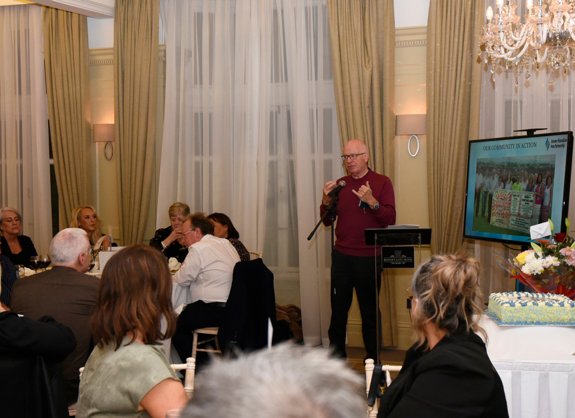 Joe Martin addressing the attendance at the Greater Shantallow Area Partnership's 30th anniversary celebrations.