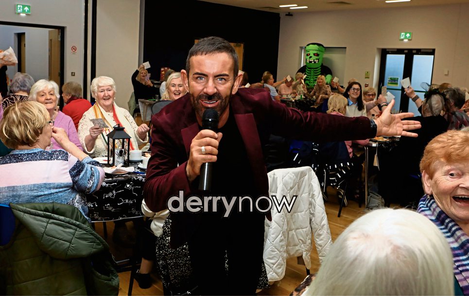 Local celebrity Mickey Doherty entertains at the Halloween Afternoon tea dance.