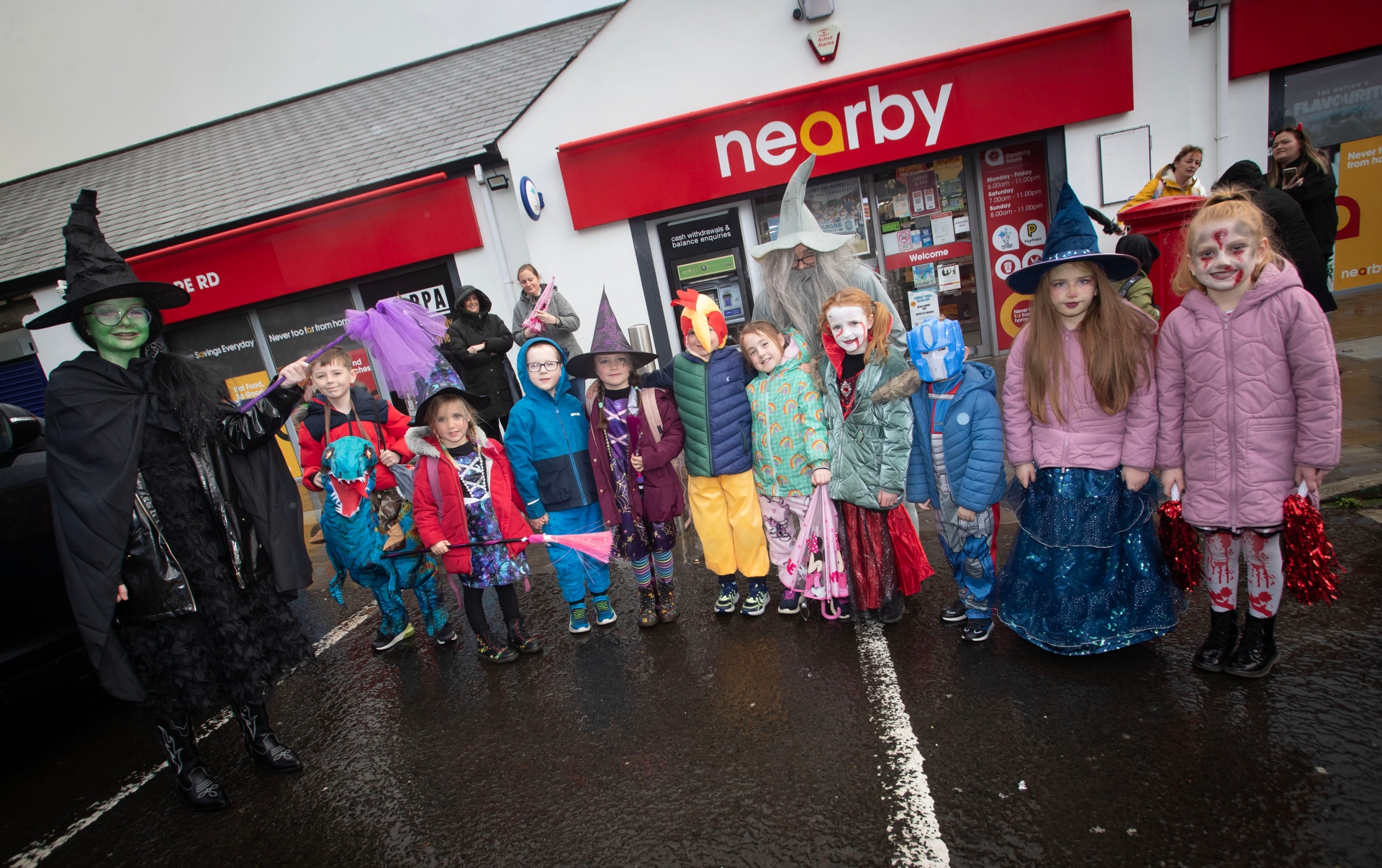 Some of the hardy souls who braved the elements for the annual Hollybush Primary School's 'Haunt Jaunt' on Wednesday morning. (Photos: Jim McCafferty Photography)