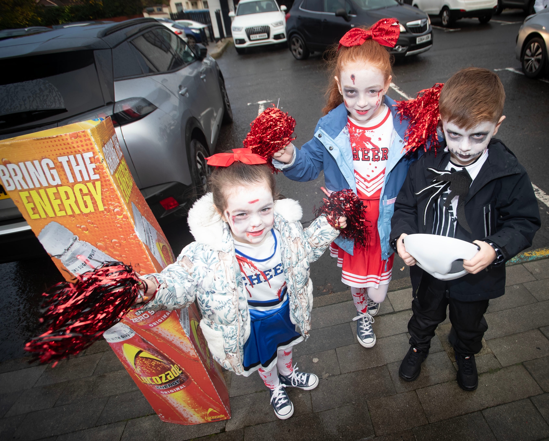 The Dawsons arrive at Nearby in Culmore for the Haunt Jaunt to Hollybush PS on Wednesday morning - all sporting some very impressive face paintings!