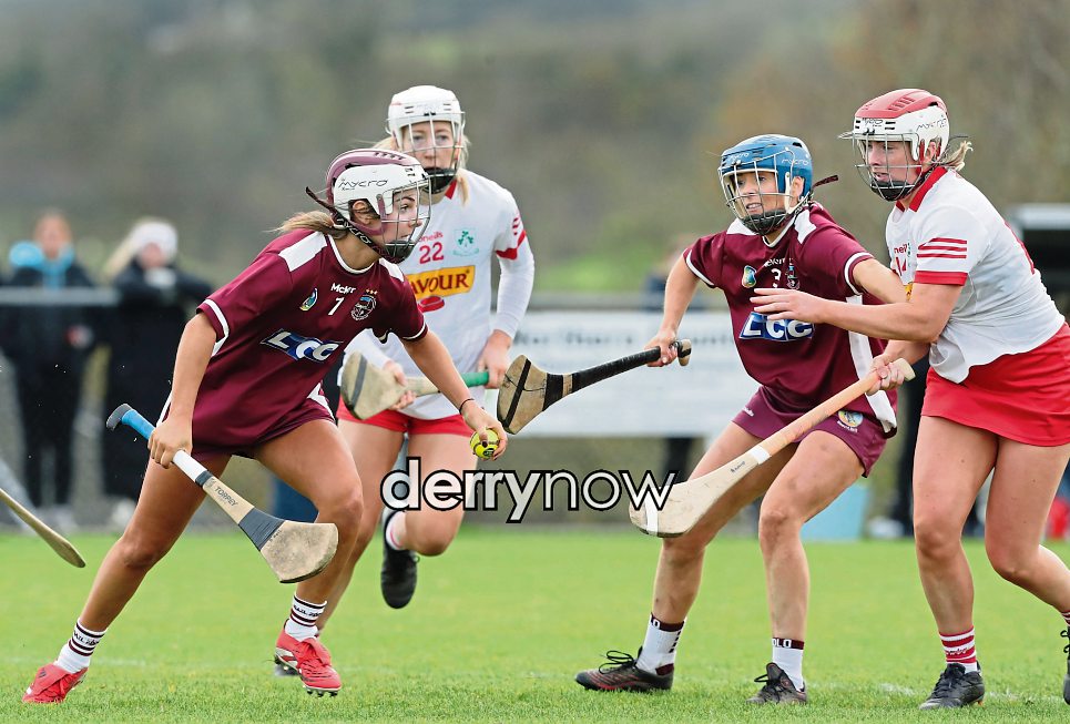 Slaughtneil Ceat McEldowney and Clare McGrath with Annie Lynn of Loughgiel.
