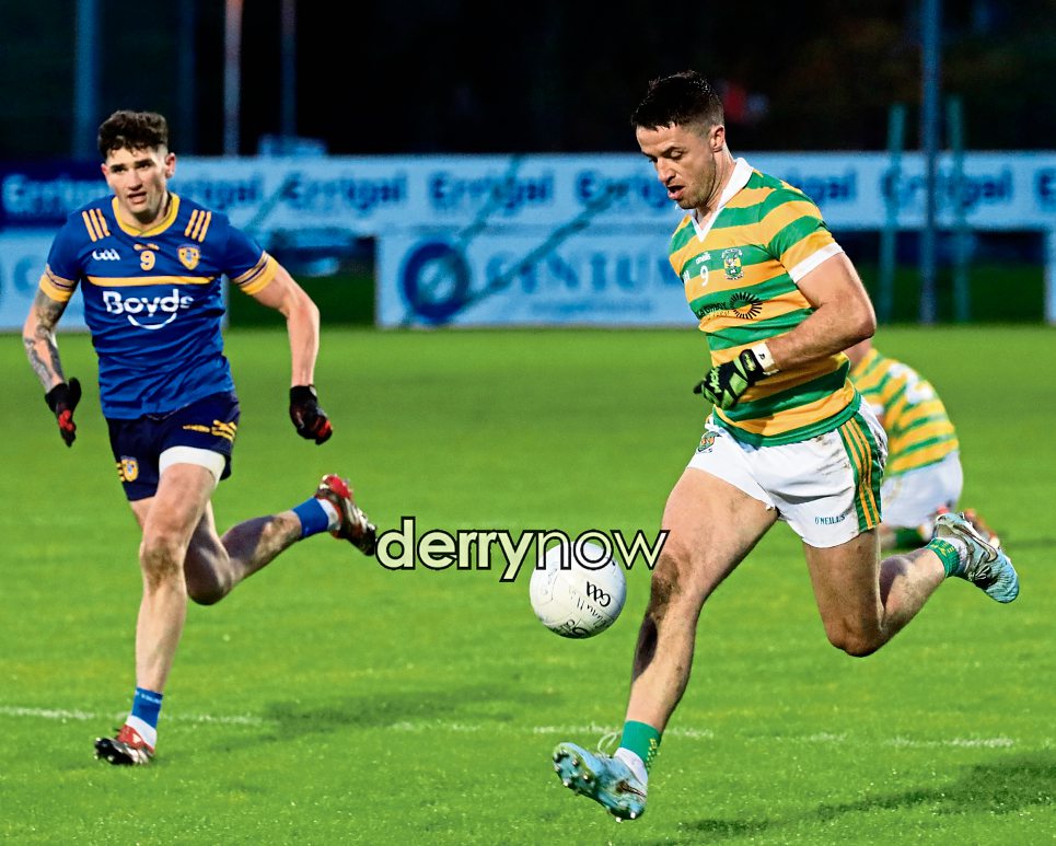 Glenullin’s Neil McNicholl races up the field against Moneyglass in the 2025 Ulster Club Intermediate Football Round 1 at Owenbeg on Saturday. (Photos - Tom Heaney, nwpresspics)