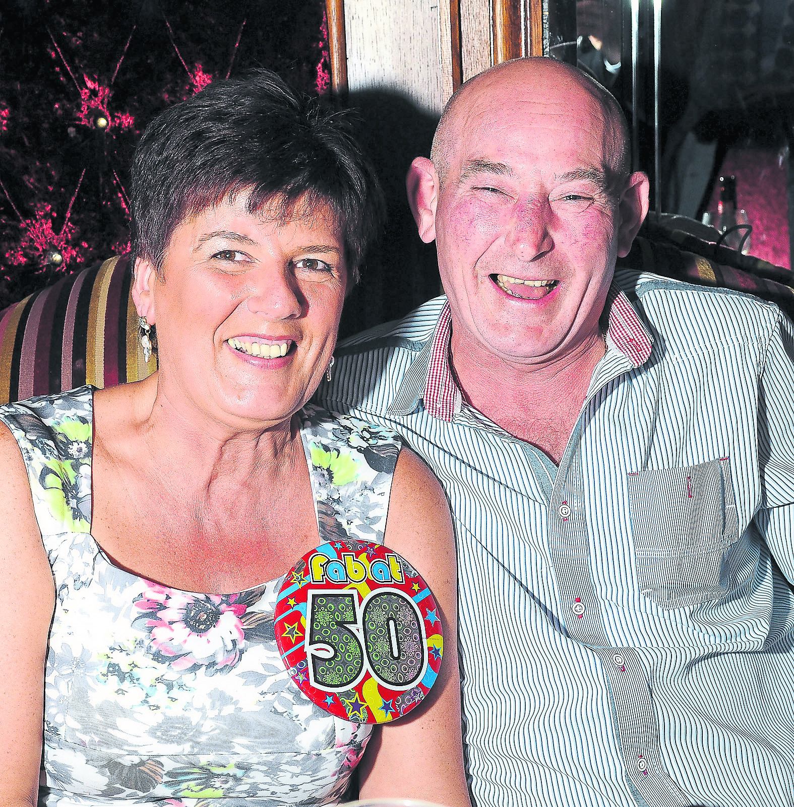 Caroline O'Donnell and her husband Fergal celebrating Caroline's 50th birthday in Mary's Bar