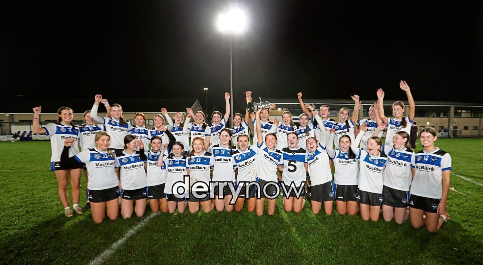 St Patrick's Maghera celebrate after beating St Mary's Magherafelt during the Corn Eimhear final.