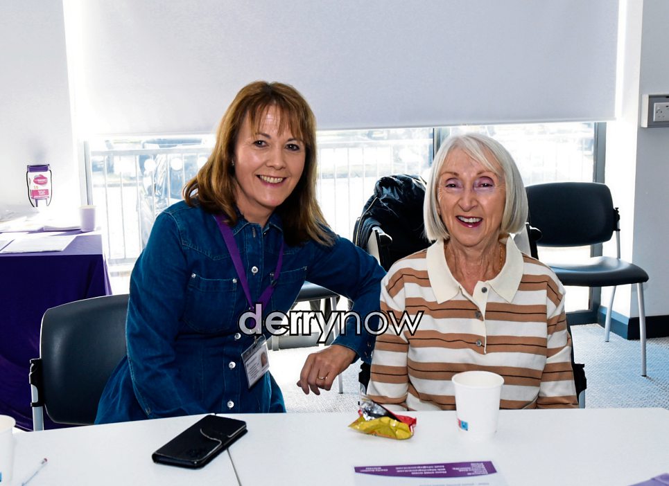 Joanne O'Hagan, OG Cancer NI, and Noleen McMorris pictured at the OG Cancer NI Winter Wellbeing Meeting.