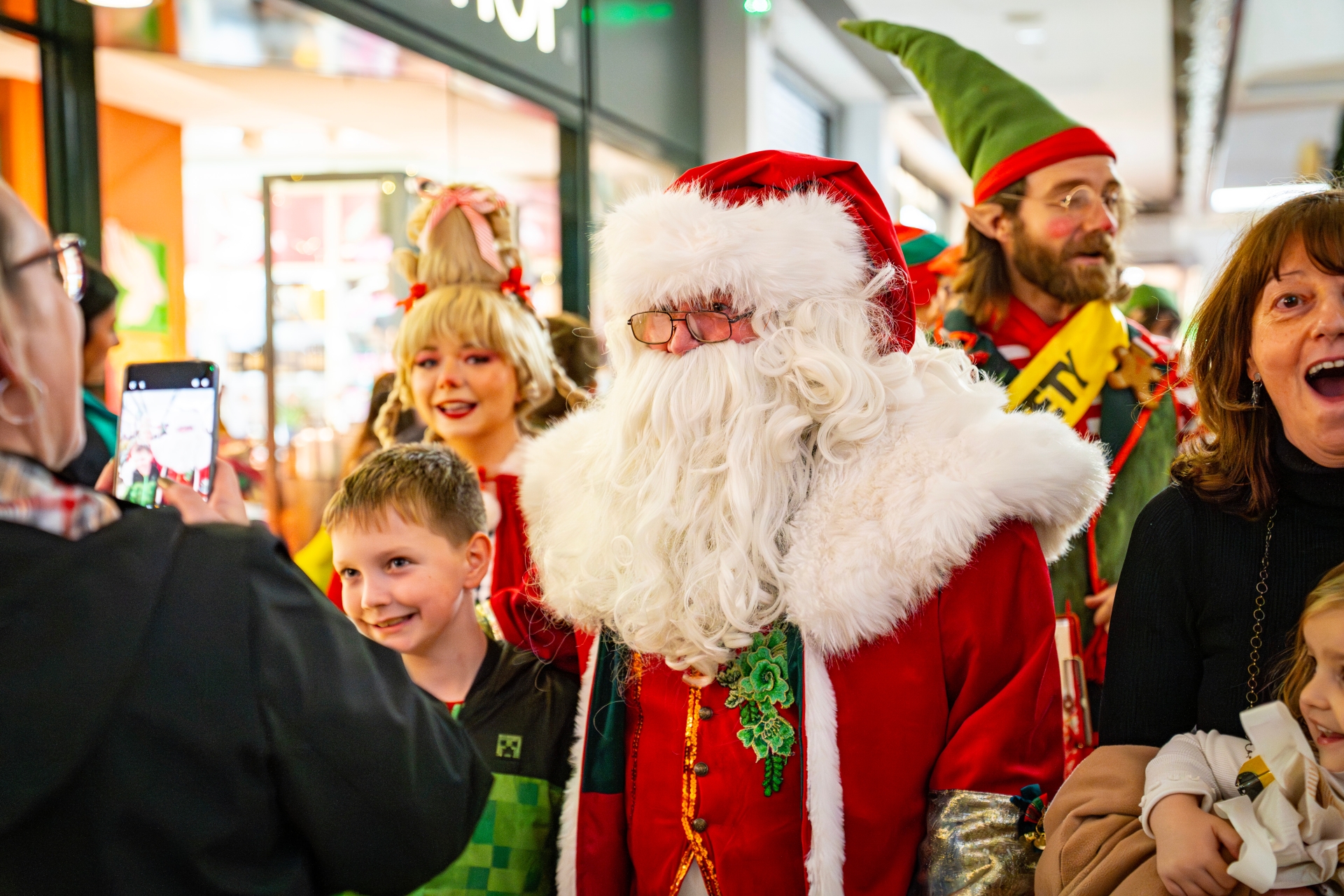 Santa arrives at Foyleside Shopping Centre to the cheers of gathered families. (Photo Credit: Aodhan Roberts)