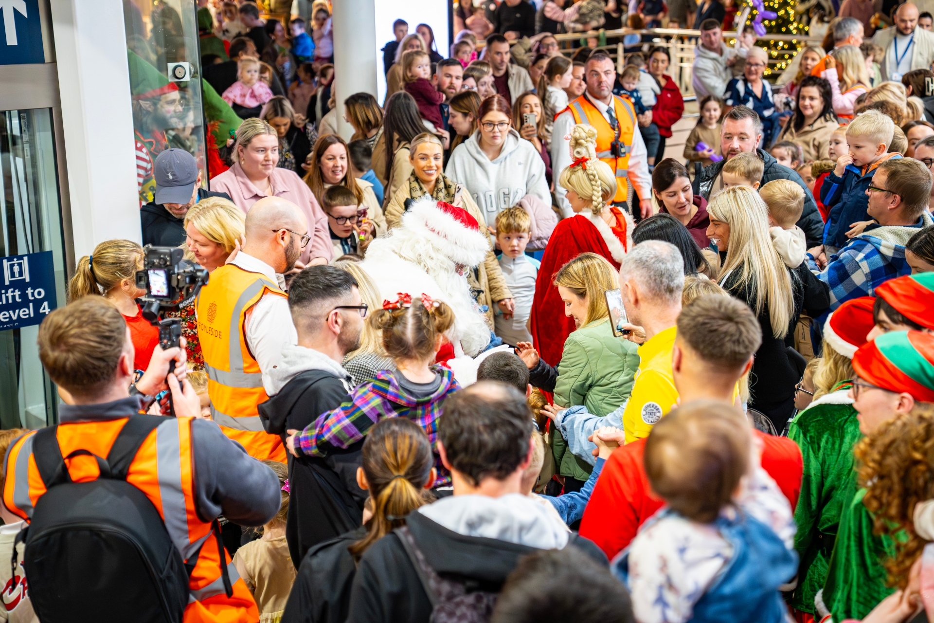 Santa arrives at Foyleside Shopping Centre to the cheers of gathered families. (Photo Credit: Aodhan Roberts)