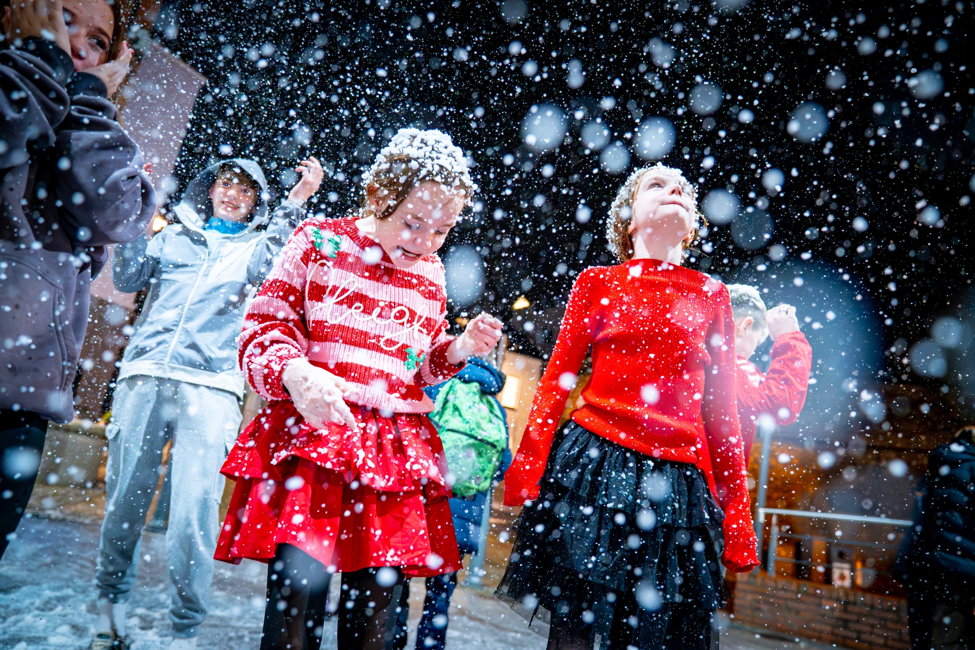 Snow falls outside Foyleside Shopping Centre as the snow machine transforms the Christmas launch into a winter wonderland. (Photo Credit: Aodhan Roberts)