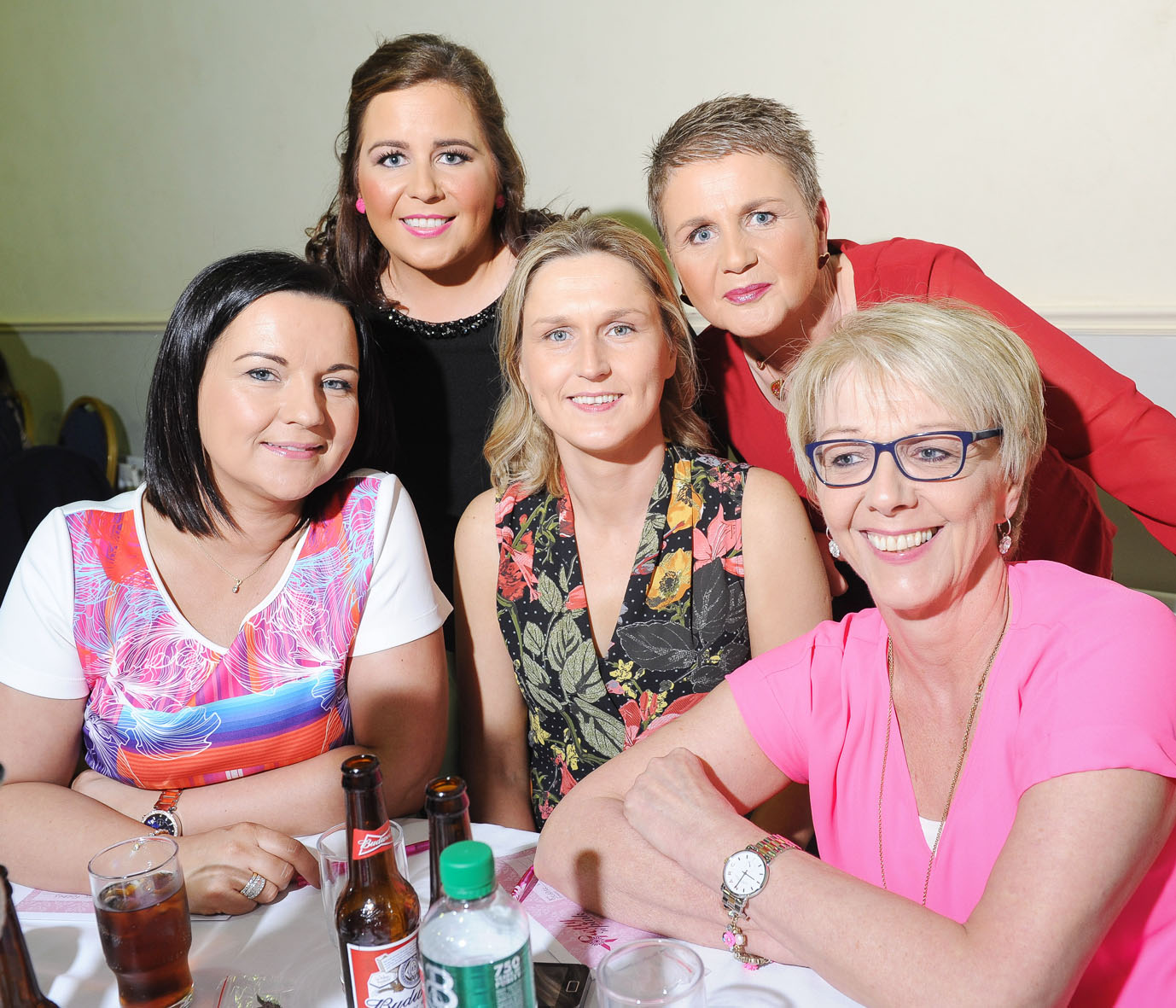 Ciara Forbes, Claire McAllister, Deirdre Marron, Deirdre McCorry and Monica Donnelly, pictured at the St. John Bosco Mums & Tots Group Ladies Only Pretty 'N' Pink Charity Pamper Night, held in the St. John Bosco Community Hall.
