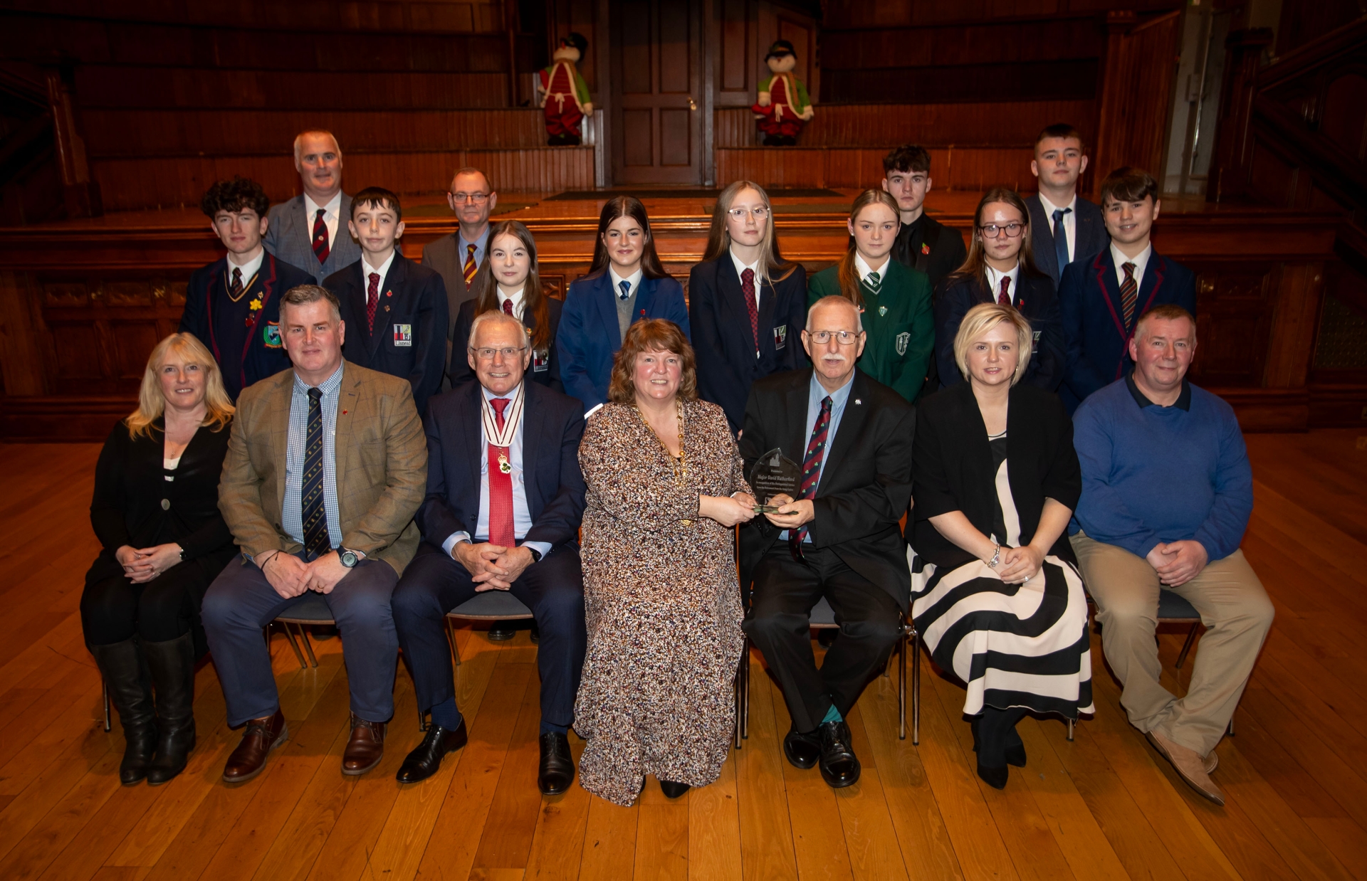 The Deputy Mayor, Niree McMorris pictured making a special presentation to Major David Rutherford at the Guildhall on Wednesday evening in recognition of his distinguished service upon his retirement from the 1st Battallion Northern Ireland Army Cadet Force. Included are Officers and Cadets from the 1st Northern Ireland Battallion of the Army Cadet Force.
