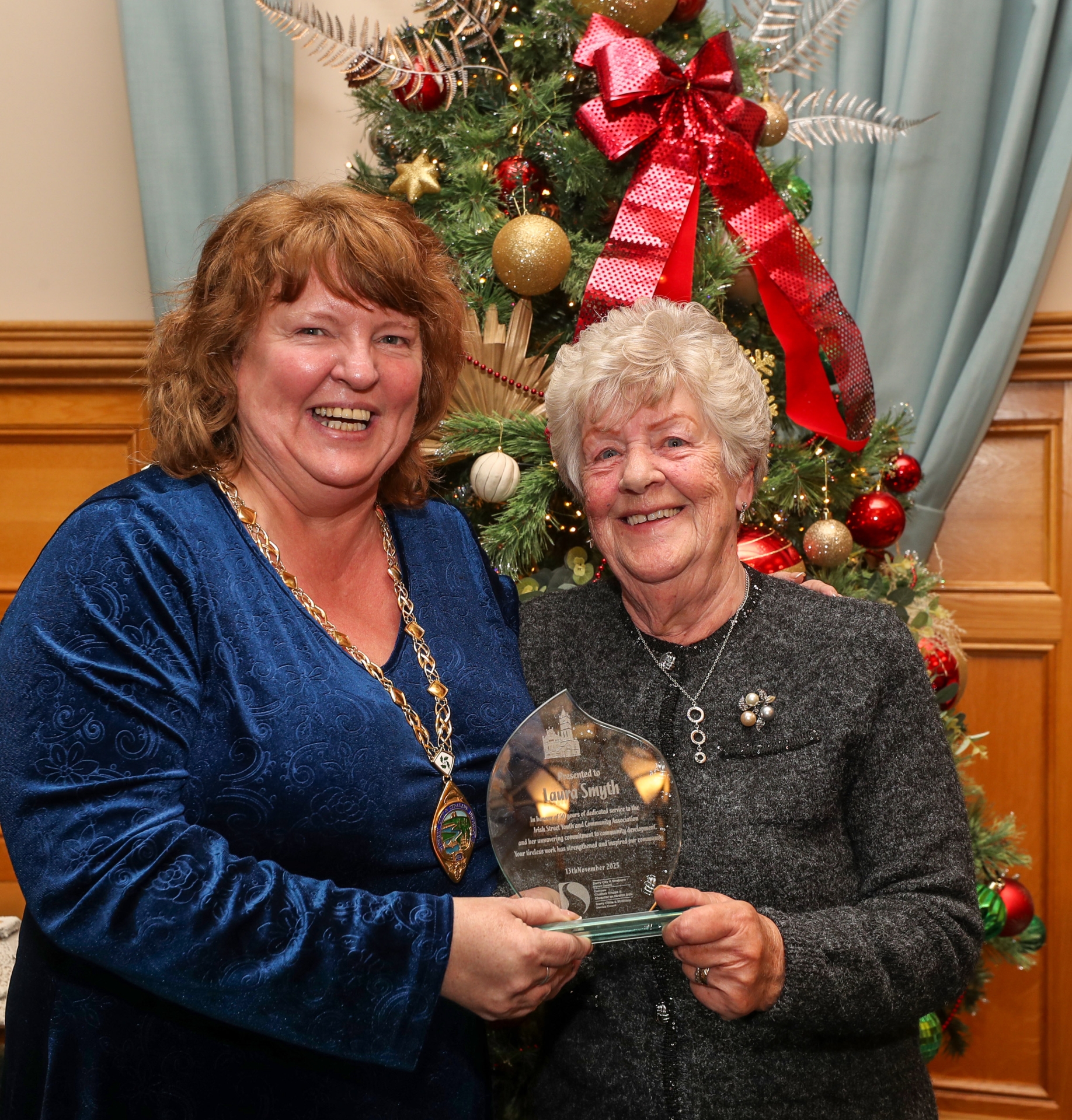 The Deputy Mayor of Derry City and Strabane District Council, Alderman Niree McMorris, held a civic reception for Laura Smyth in the Guildhall this week in recognition for her commitment to Community Development in the Irish Street area and her service as a committee member of Irish Street Youth and Community Association for 50 years.