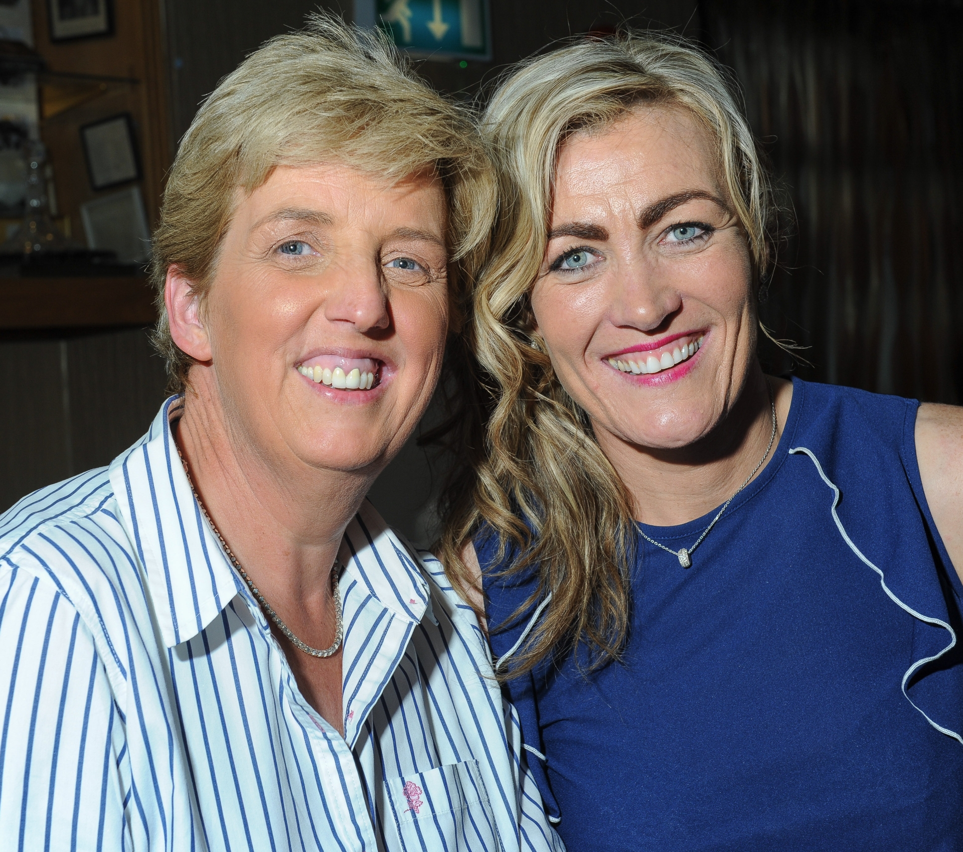 Moyola Park Golf Club Lady captain Sinead McMeel and vice captain Mary O'Kane pictured when they were the guests of Killymoon Captain Kathryn Irwin on her Captain's Day last Saturday.