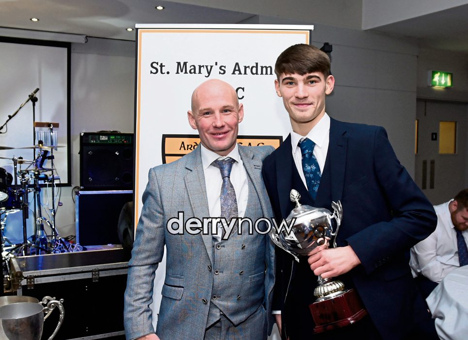 U16 Boys Player of the Year is presented to Shay Storey by Peter McLaughlin.