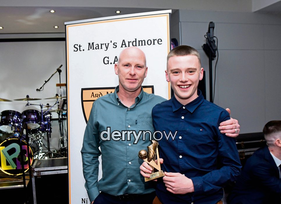 U14 Boys Top Goalscorer is presented to James McLaughlin by William McLaughlin. (Photos -Kerrie Quinn, nwpresspics)