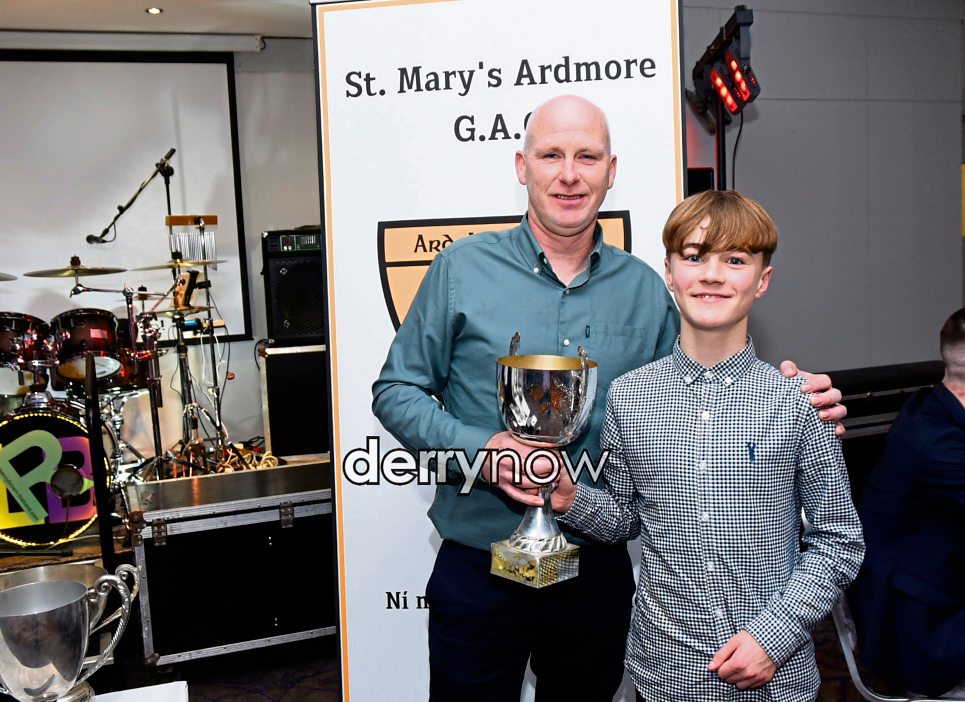 U14 Boys Player of the Year is presented to Daithi McCarron by William McLaughlin.