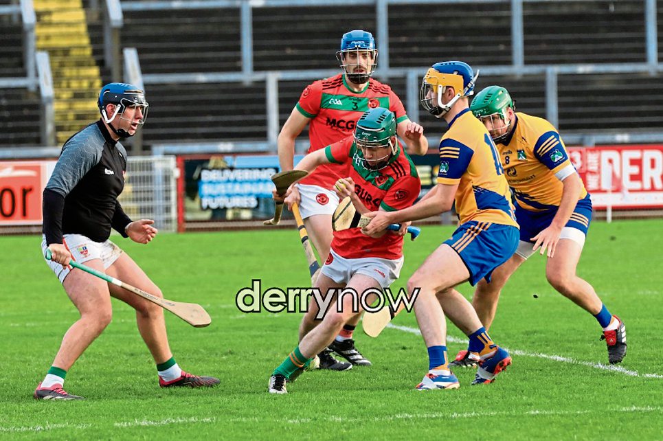 Goalmouth action at the Junior Hurling final, Lavey v Burt held in Celtic Park on Saturday. (Photos - Tom Heaney, nwpresspics)