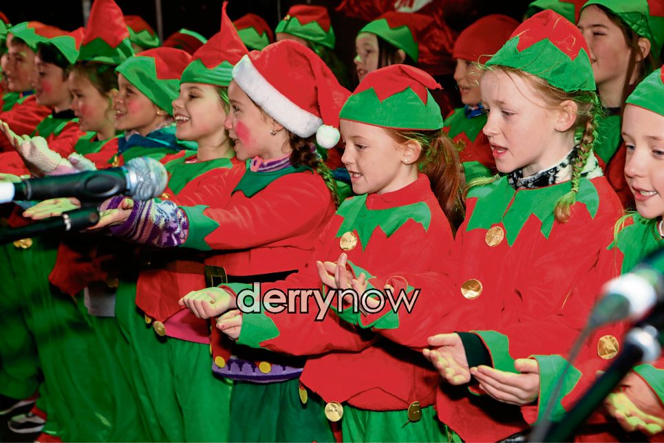 School children singing Christmas songs.