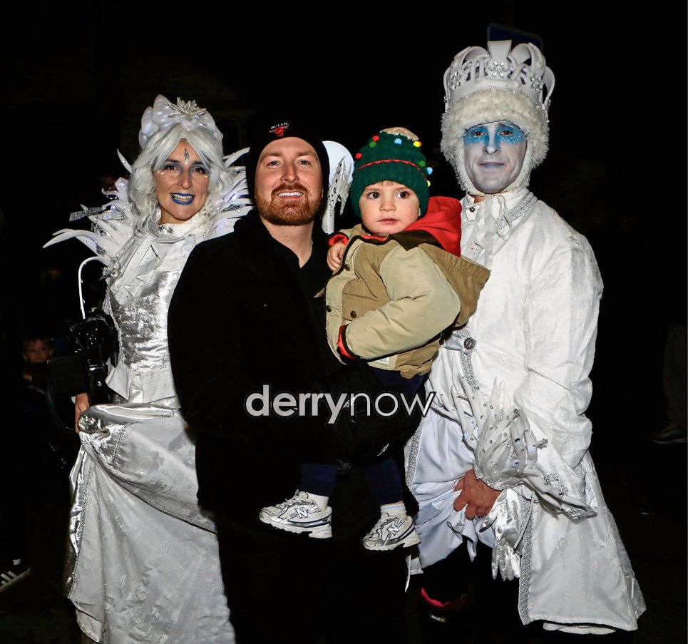 Christopher and Noah McCarter with "Ice King & Queen" characters at the Culmore Community Partnership’s “Elf Parade and Christmas lights switch-on”.