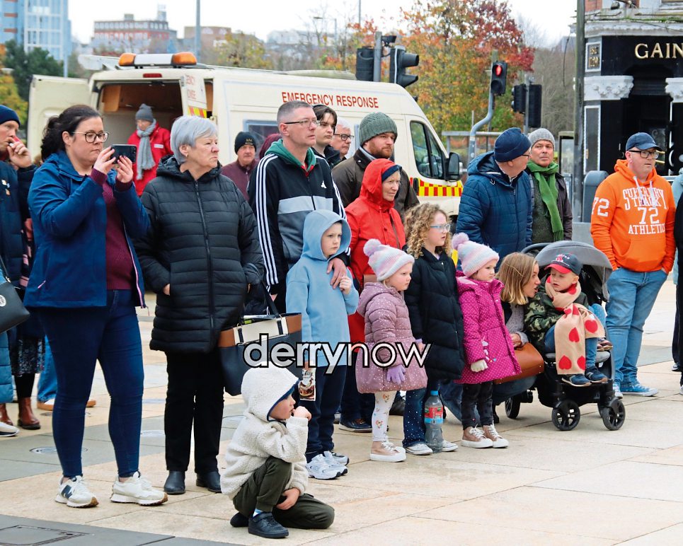A group of children and their families watching a car crash demonstration at the event.