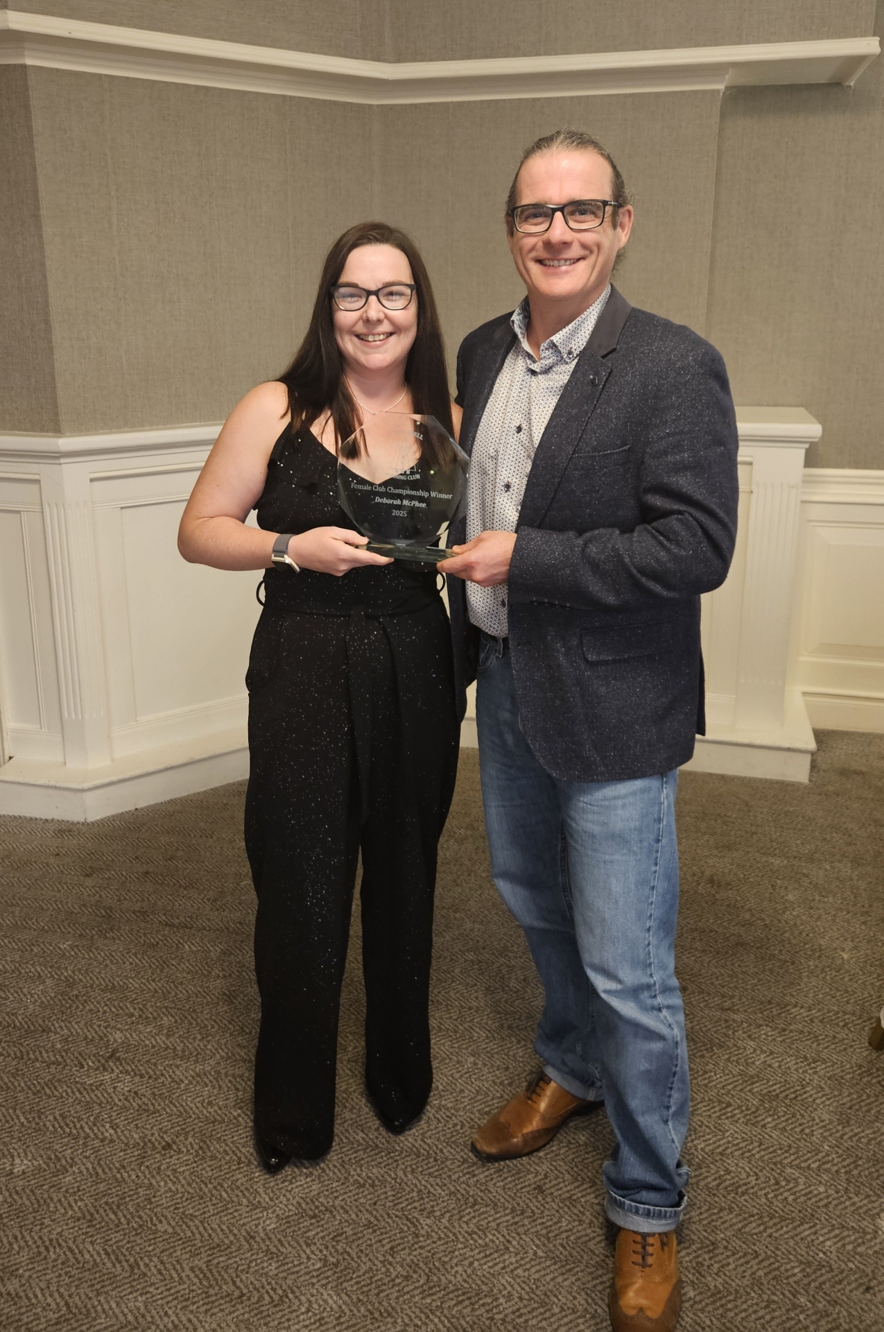 Darren Walsh presenting the Female Club Championship Winner Award to Deborah McPhee. Deborah also won the Club Member of the Year Award