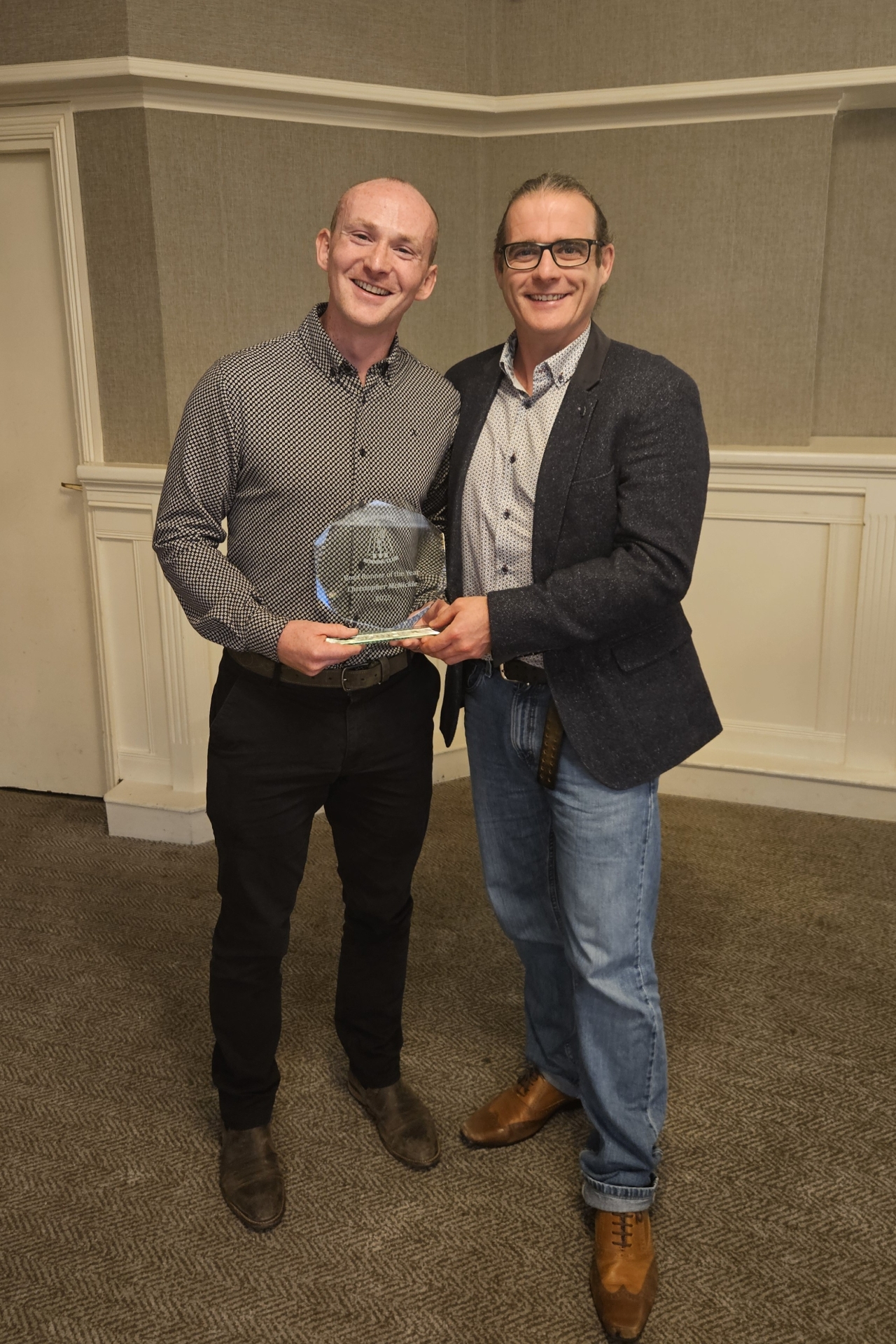 Darren Walsh presenting the Road Runner of the Year Award to Christopher McNickle