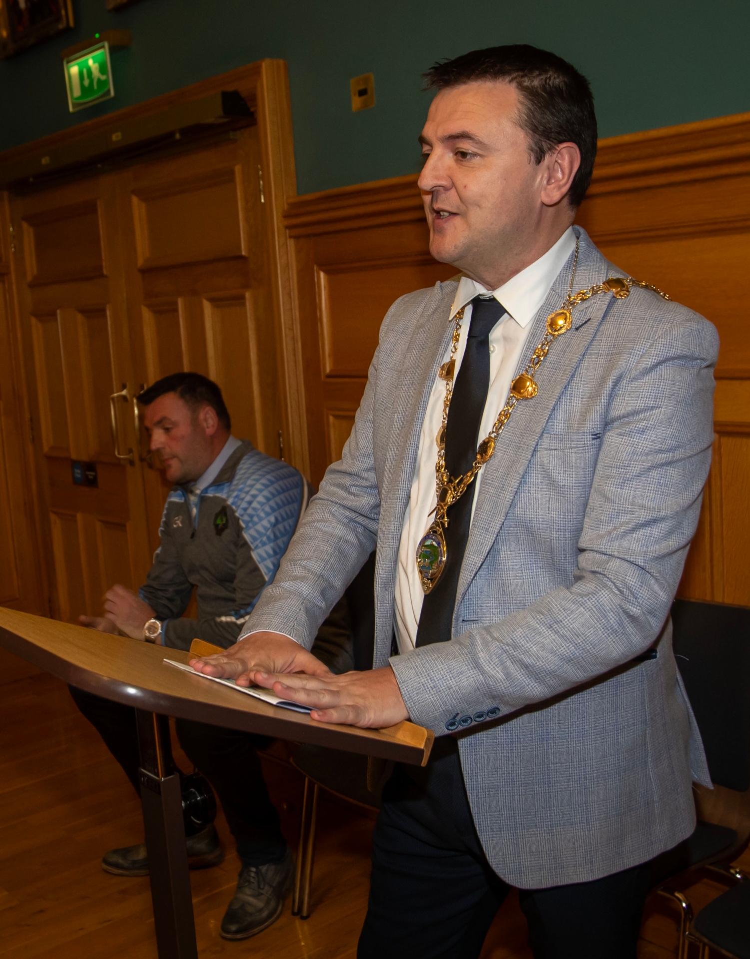 Mayor of Derry City and Strabane District Council, Ruairi McHugh,, addressing the attendance at Wednesday evening's Mayoral Reception in honour of Culmore Cu Chulainns u-14 team who won the 2025 Derry u14C Championship recently.