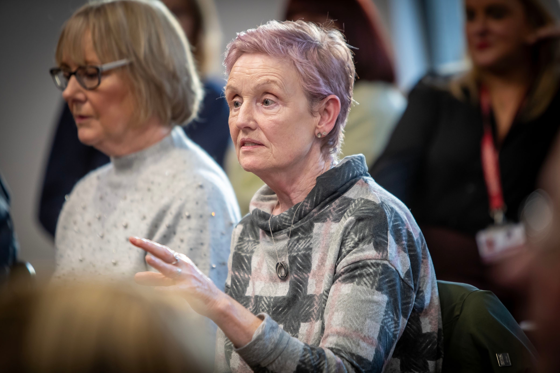 A member of the audience asks a question of Dr. Hassan on Tuesday.