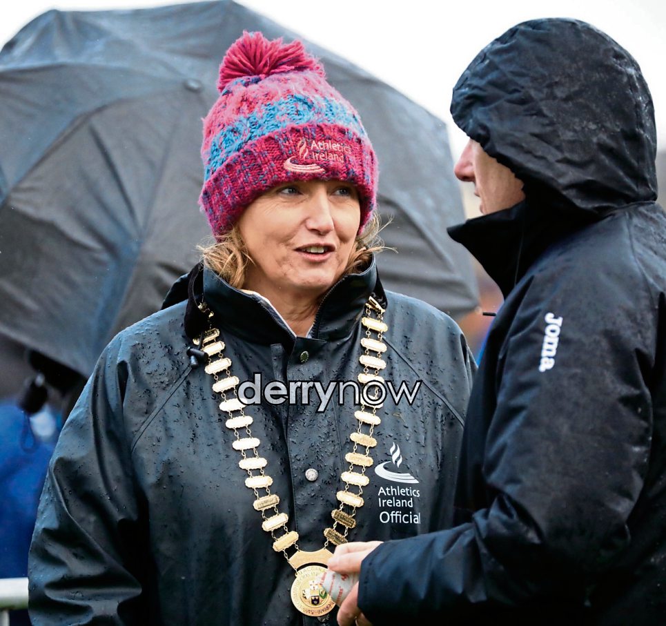 Bríd Golden, president of Athletic Ireland at the National Senior, U20, Juvenile Even Age Cross Country Championshipst.