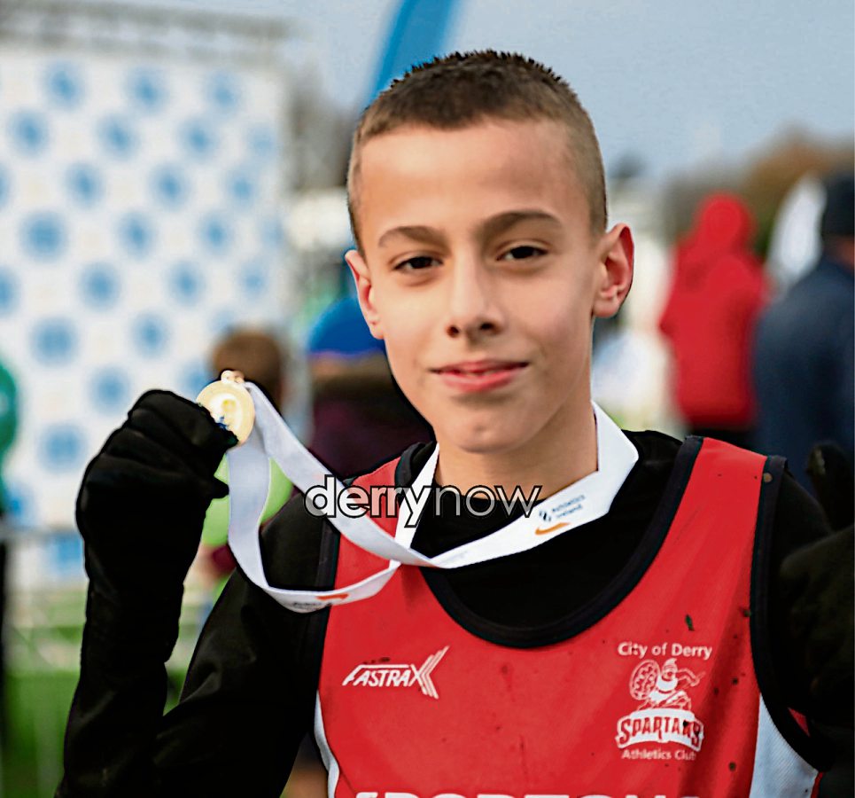 City of Derry Spartans AC athlete Lucas Janosik winner of the U12 boys' race at the NationalJuvenile Even Age Cross Country Championships held at Templemore Sports Complex. (Photos - Heaney, nwpresspics)