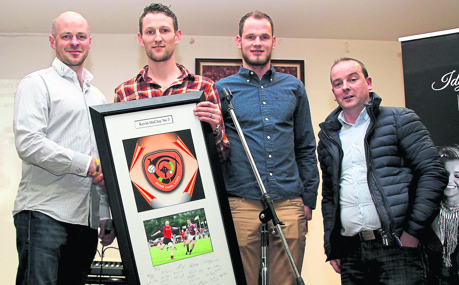 Kevin McCloy accepts a gift from the players and management at Lavey GAC