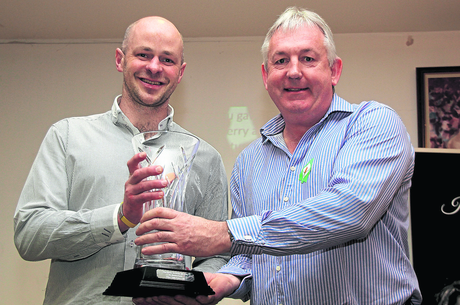 Sean McPeake makes a presentation to his club man Kevin McCloy