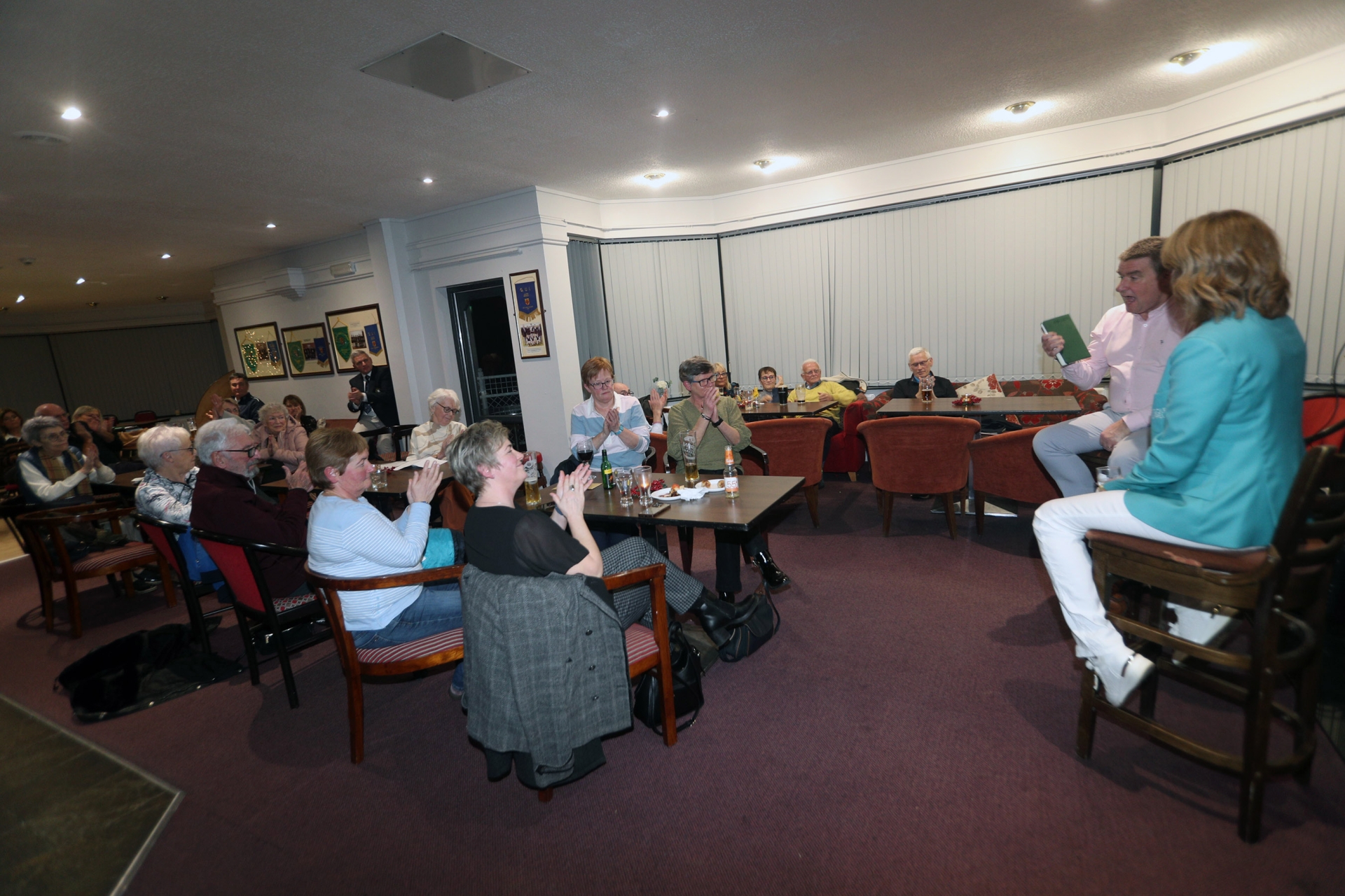 Host Kevin Doherty thanks Naoimh Quigg at Friday night's event in the City of Derry Golf Club.