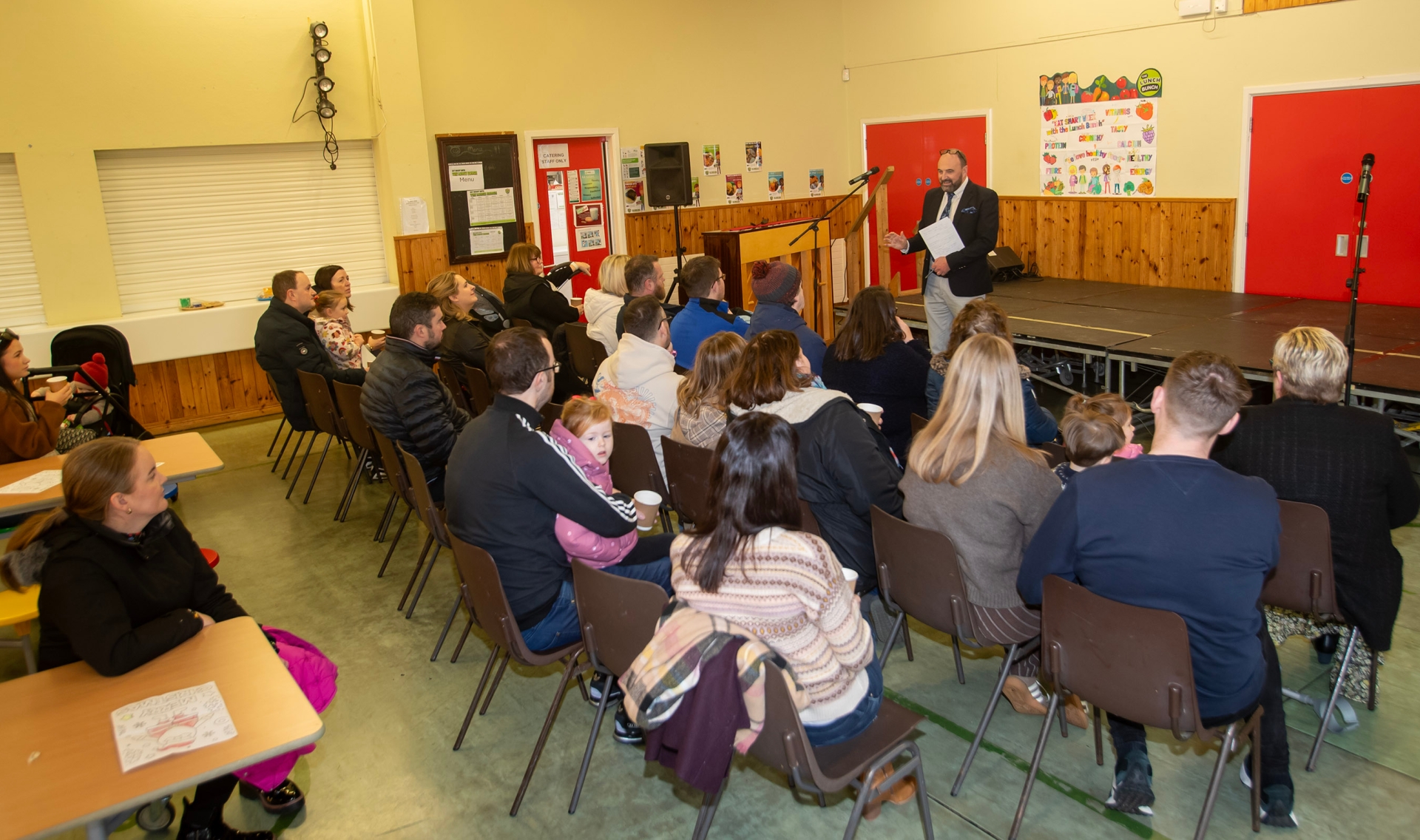 Hollybush PS Principal, Mr. Feargal Friel addressing parents at Open Day.