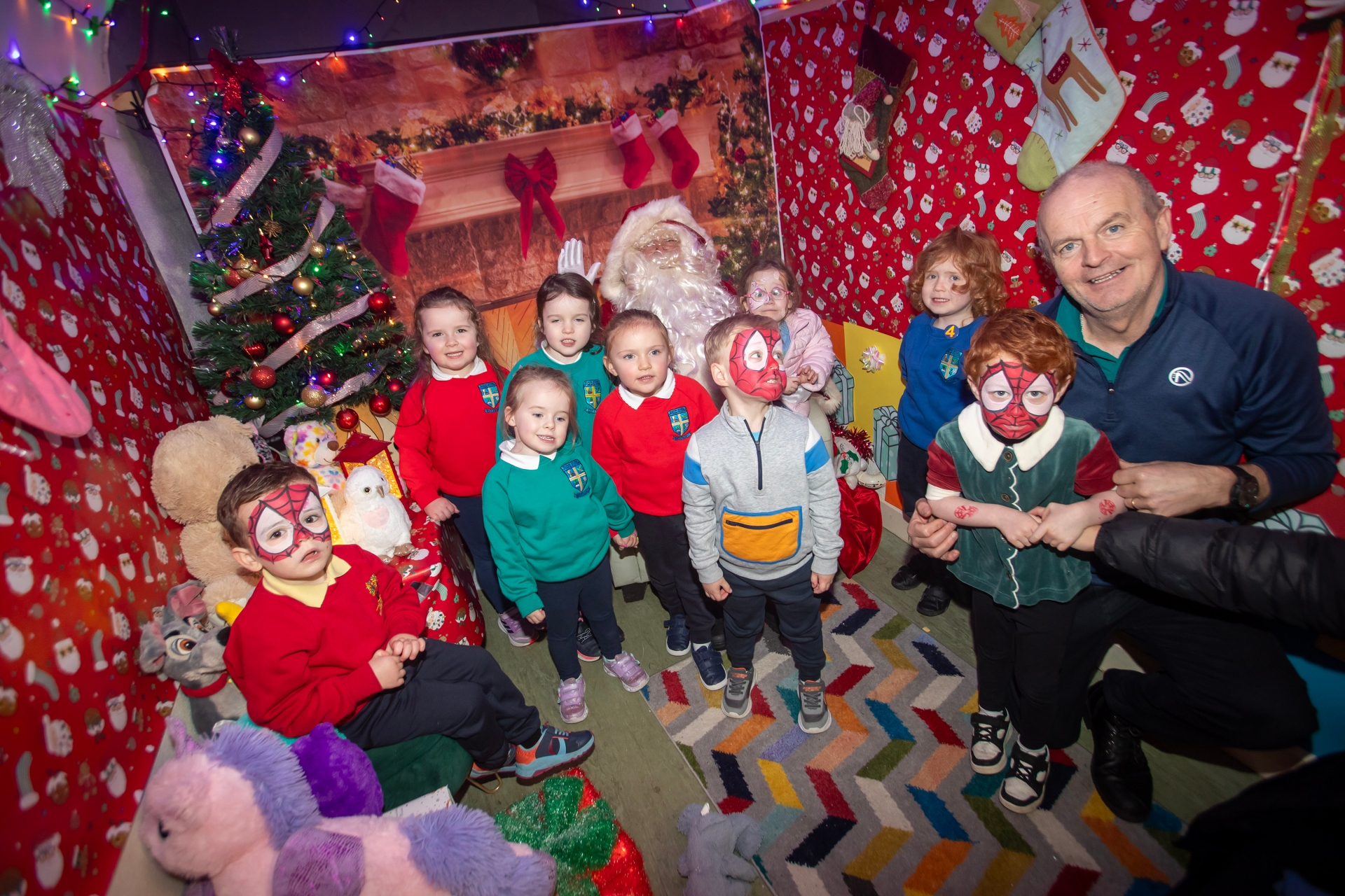 Santa Claus pictured in his grotto during the Hollybush Primary School's Open Day on Tuesday. Included are some of the prospective pupils and the school caretaker Mr. Andy McDermott. (Photos: Jim McCafferty Photography)