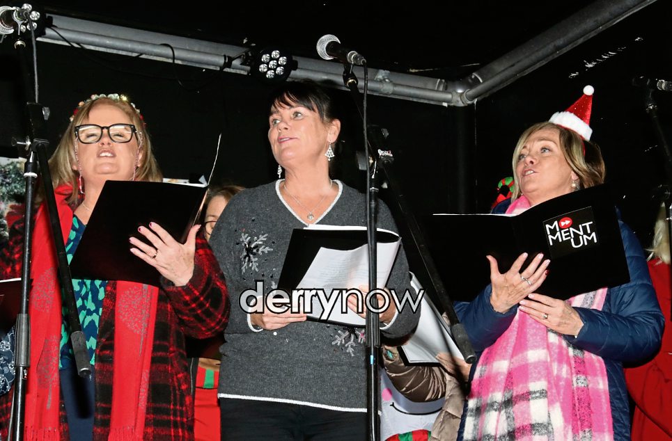 The Fury sisters singing at the Christmas Tree Light Switch On.