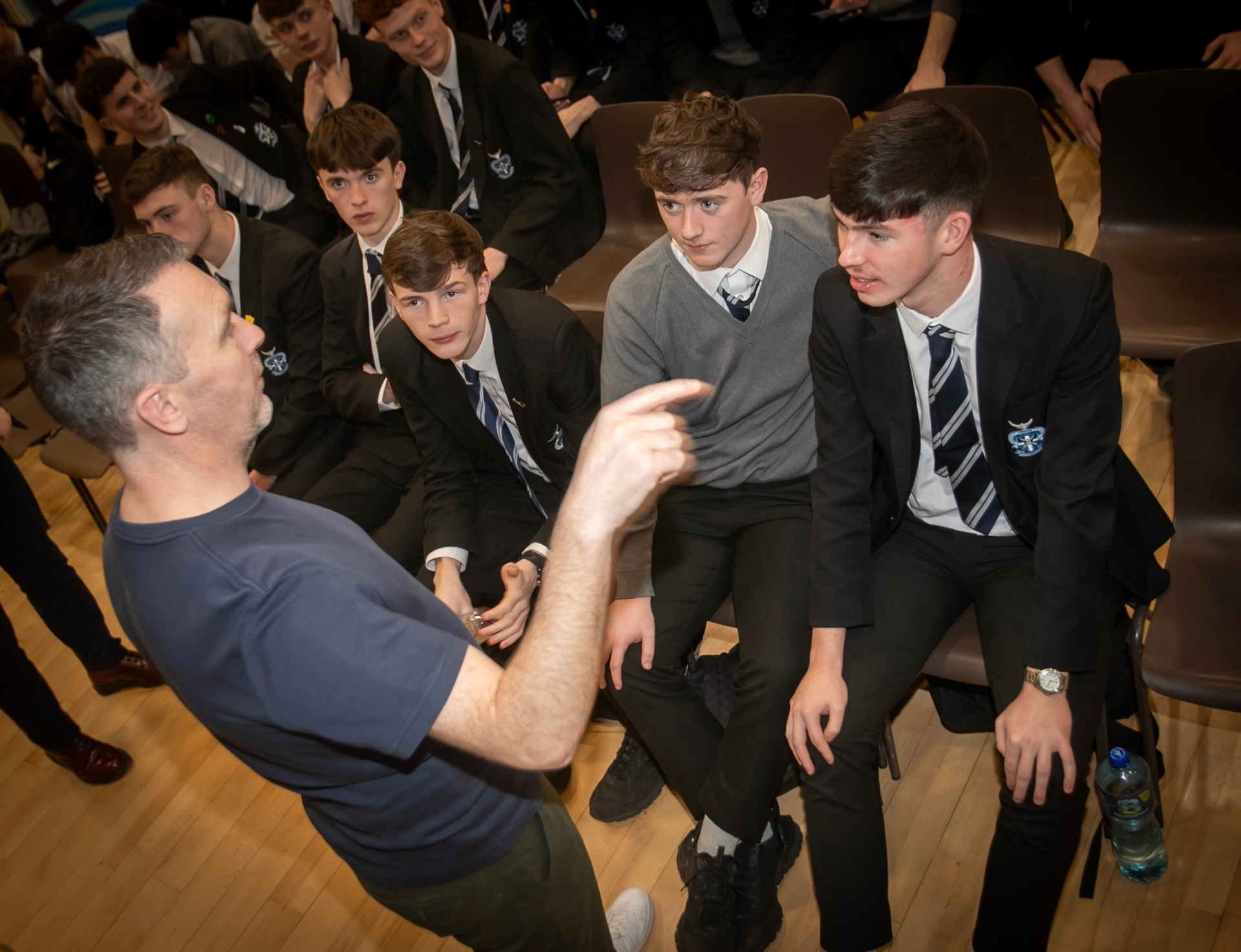 The former GAA All-Star Oisin McConville chatting to Year 14 students on Wednesday.