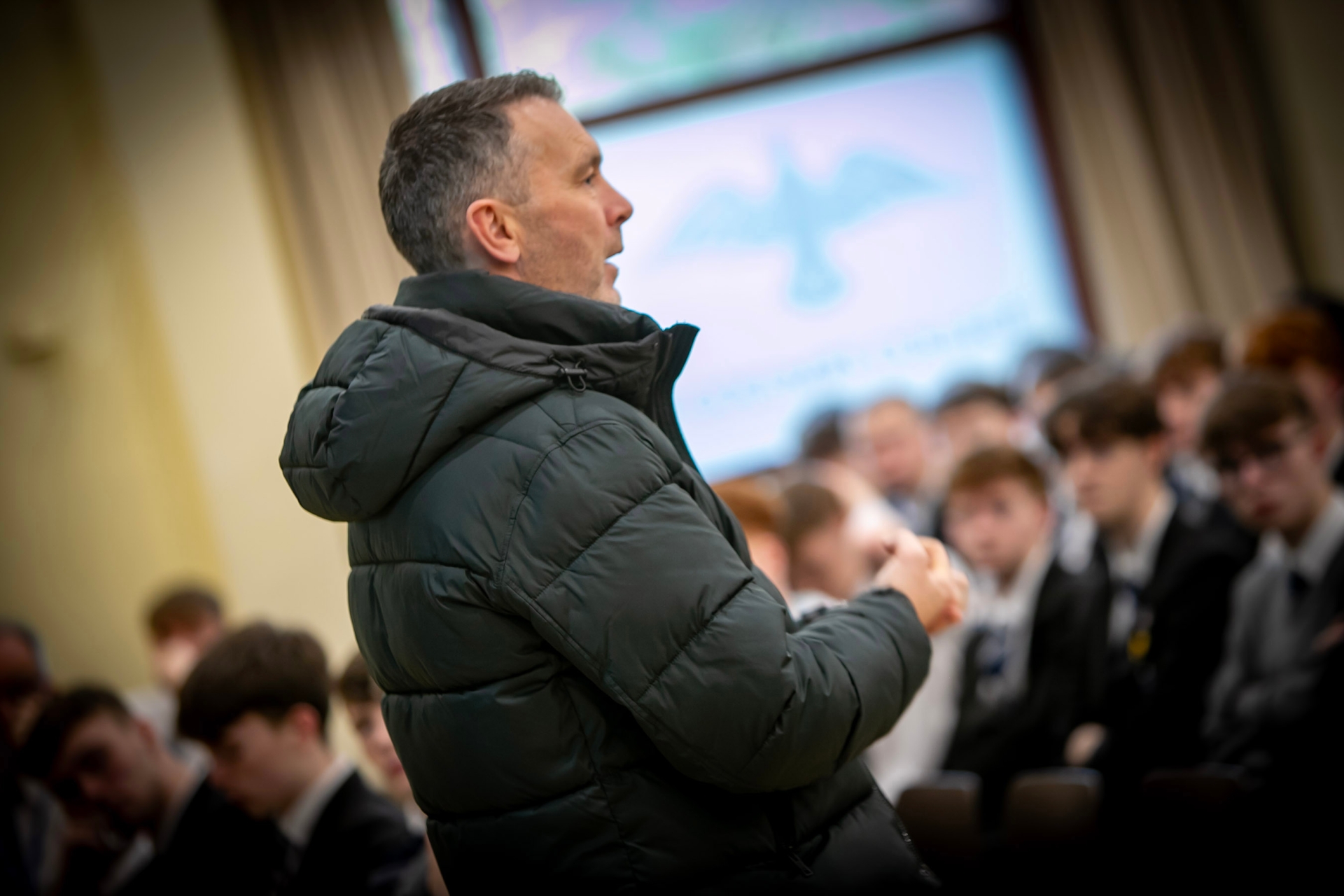 Oisin McConville addressing the attendance at Wednesday's event in St. Columb's College.