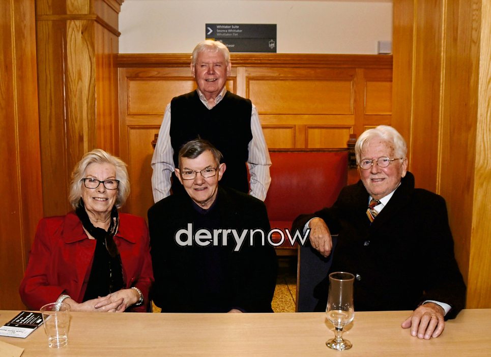 Willie Deery, event organiser with Clare Moore, Vincent Doherty and John Smyth at the Factory Girls' Reunion Dance held in the Guildhall. (Photos - nwpresspics)