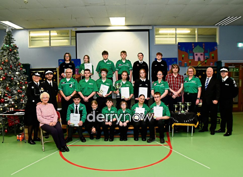 St John Ambulance Northlands Unit newly enrolled cadets are pictured with Dr Howie, Linda Heaney (Unit Manager), Bobby Wray (Assistant Unit Manager), Eamon Cavanagh (Youth Leader), Doris Coiley (Northern District Youth Manager), Paul Sheridan (Northland Cadets President), and Glen Wray (Unit Paramedic). (Photos - Kerrie Quinn, nwpresspics)