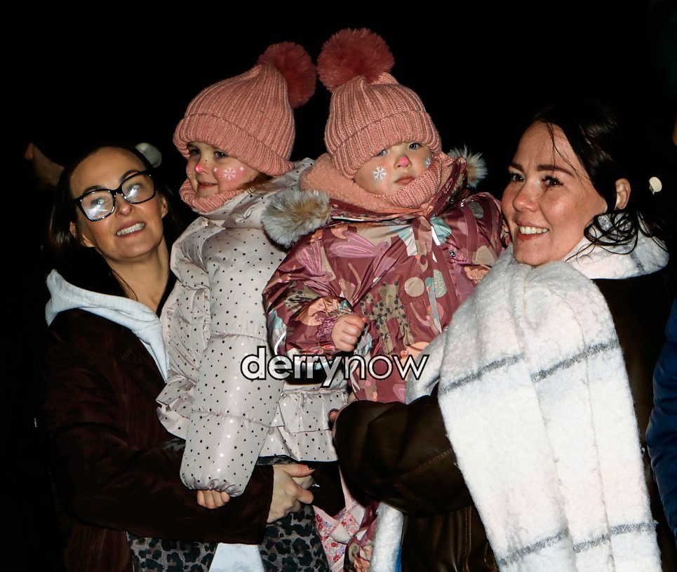 Mothers and babies at the Greysteel Christmas tree lights switch on.