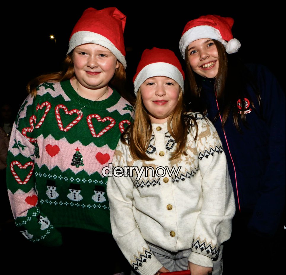 At the Greysteel Christmas tree lights switch on are Amelia, Aoife and Georgia.