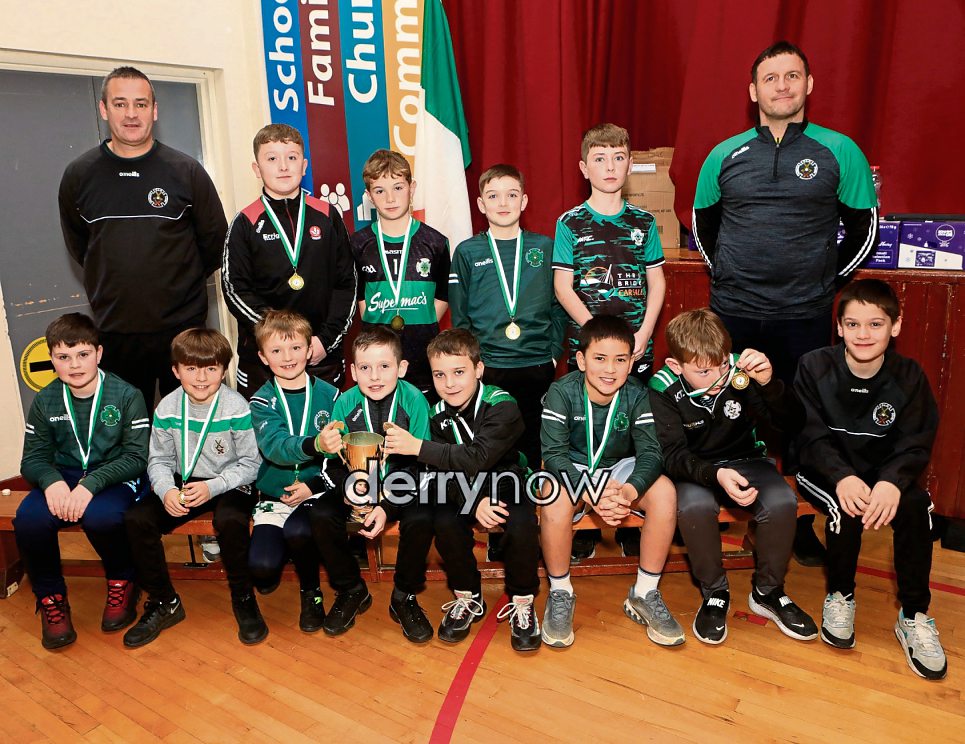 Na Magha U10 Carrickmore Cup winners with coaches Malachy McCarron and Ryan O'Donnell.