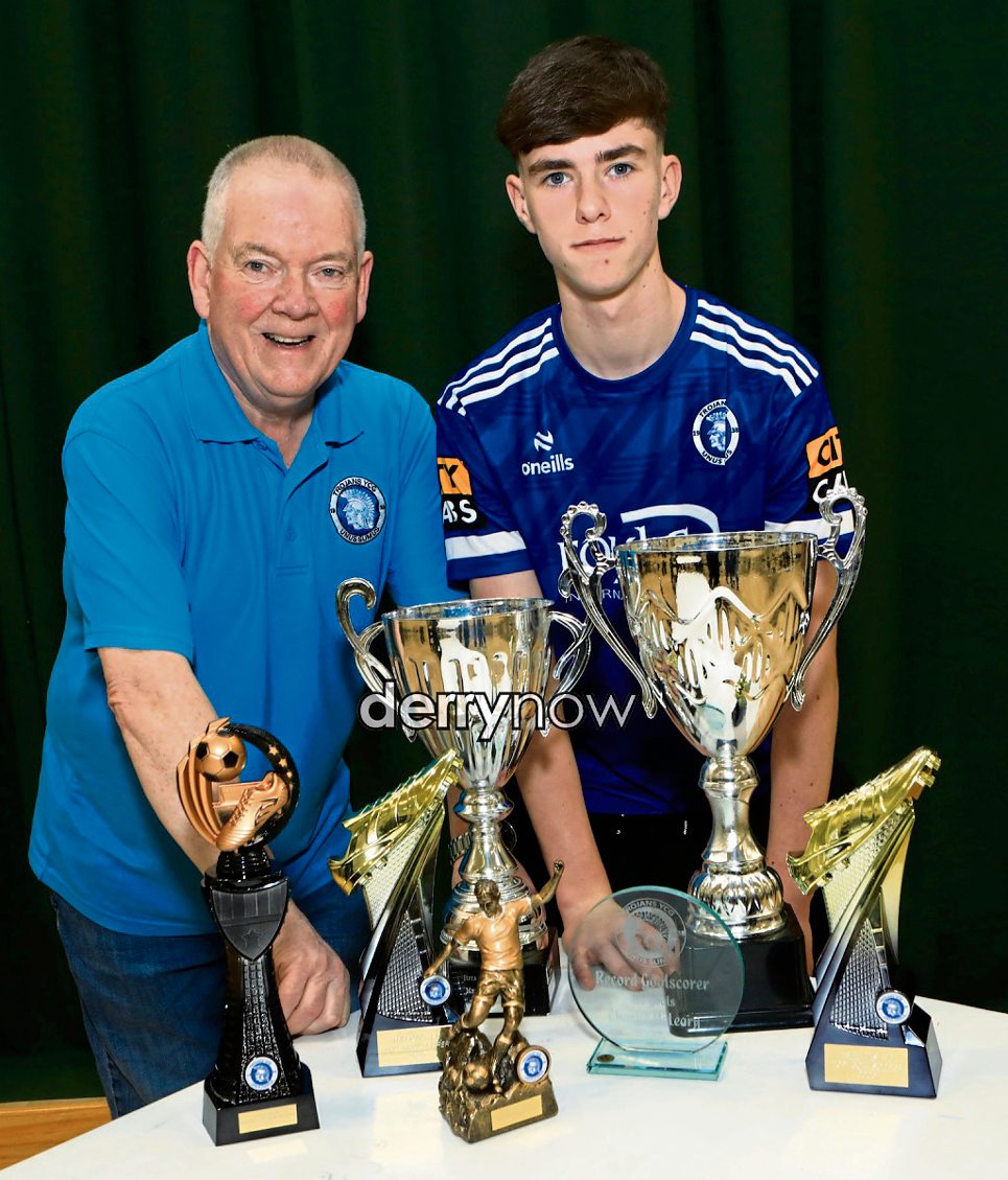 Raymond Carton with Charlie McLeary, Record Goalscorer of the Year totalling 110 goals smashing the club's record at Trojans annual presentation of awards held in Cecilia's College.
