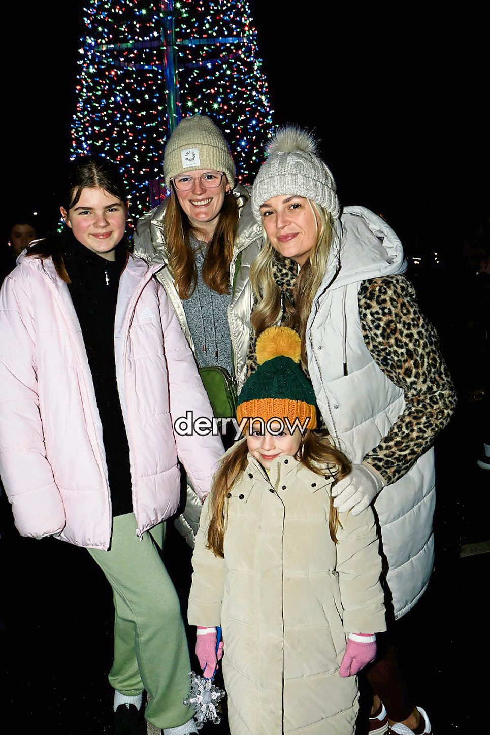 Family poses for photo in front of the Christmas tree in Ballykelly.