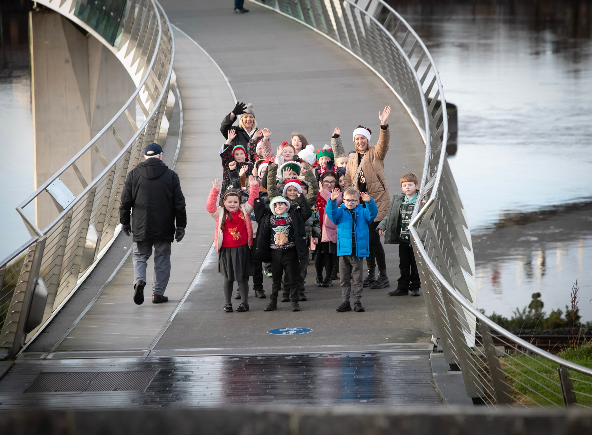 Oakgrove IPSN's Mrs. Lally and Mrs Wray pictured crossing the bridge during Thursday's Walk. (Photos: Jim McCafferty Photography)