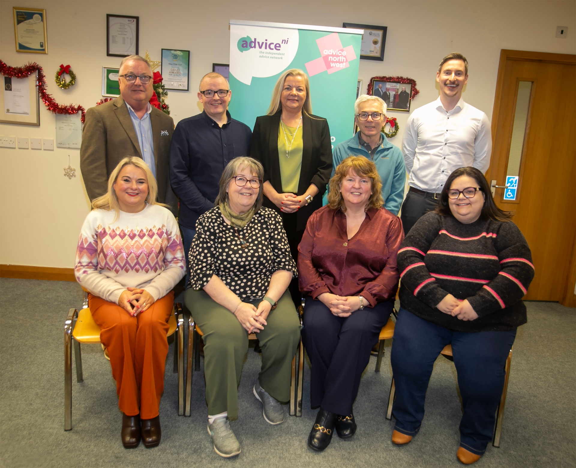 ADVICE NORTH WEST AGM 2025. . . . . Group pictured at the Advice North West Annual General Meeting held in the Embassy Buildings, Strand Road, Derry on Friday last. Front from left, Councillor Sandra Duffy Bernie Heeney, Ald. Niree McMorris and Jodie Harte. Back from left, Eddie Doherty, Kieran Phelan, Rosaleen French, manager, Advice North West, Gerry Deeney and Kevin Bradley. (Photos: Jim McCafferty Photography)