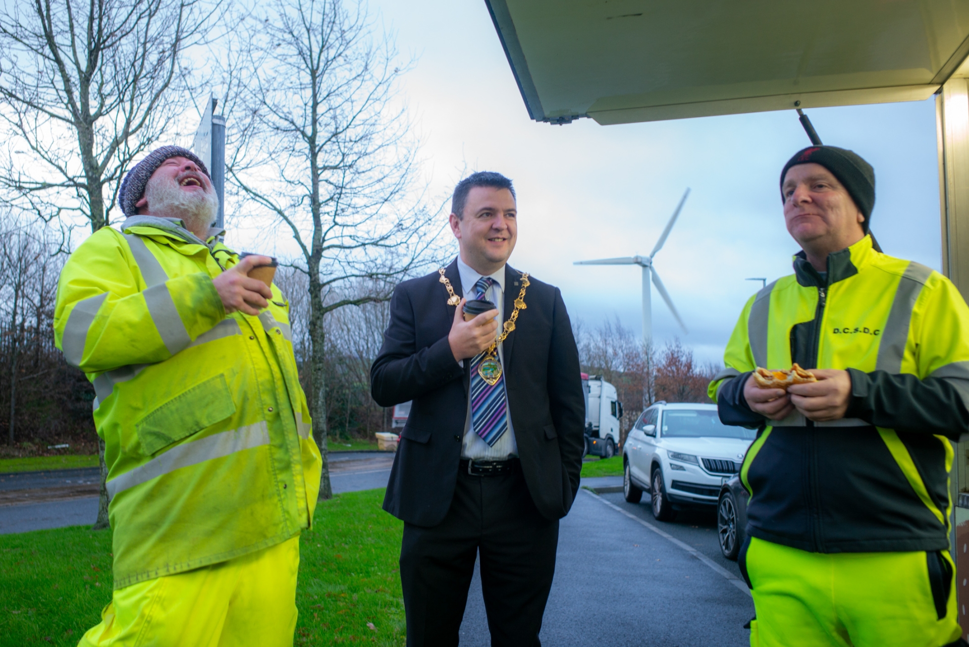 The Mayor of Derry City and Strabane District Council, Cllr Ruairí McHugh, joined employees from across the district to thank them personally for their ongoing commitment to delivering essential frontline services.