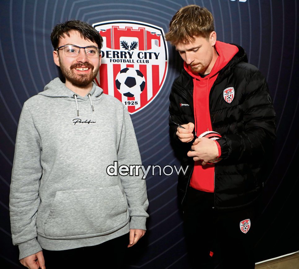 Derry City player Alex Bannon signing a football for Ciaran O'Doherty at the Meet and Greet event held in the Derry City FC shop in Foyleside. (Photos - Tom Heaney, nwpresspics)